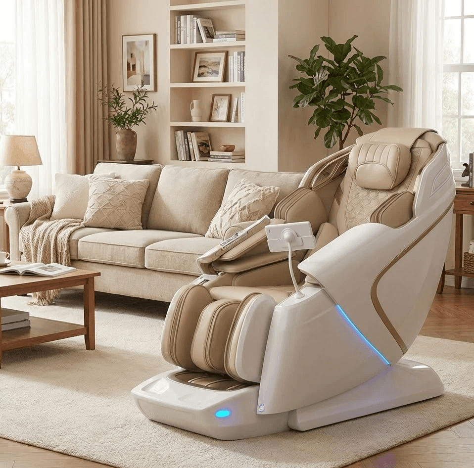 Een Full Body Massage betekent dat de massagestoel het hele lichaam behandelt: van nek en schouders tot rug, armen, heupen, benen en voeten. Dit gebeurt met een combinatie van massagekoppen, airbags en druktechnieken.
