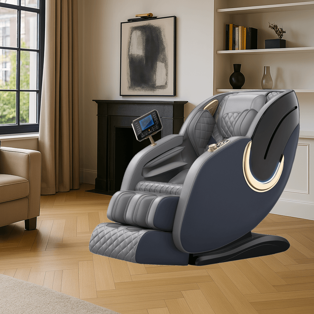 De Massagestoel Rhodos brengt hoogwaardige wellness binnen handbereik – compact in formaat, groots in ontspanning.
